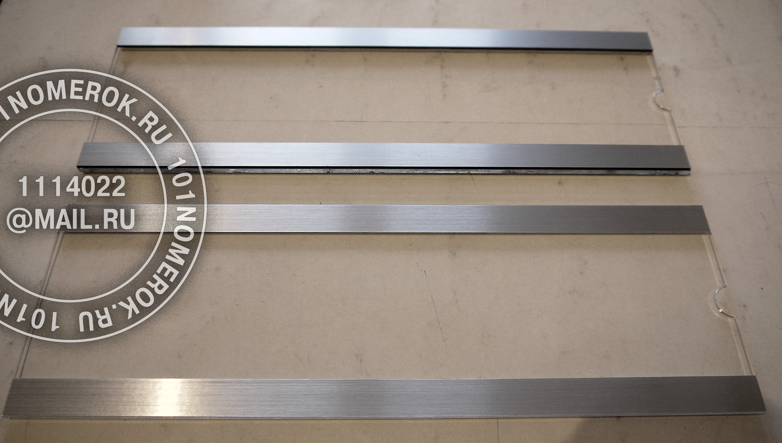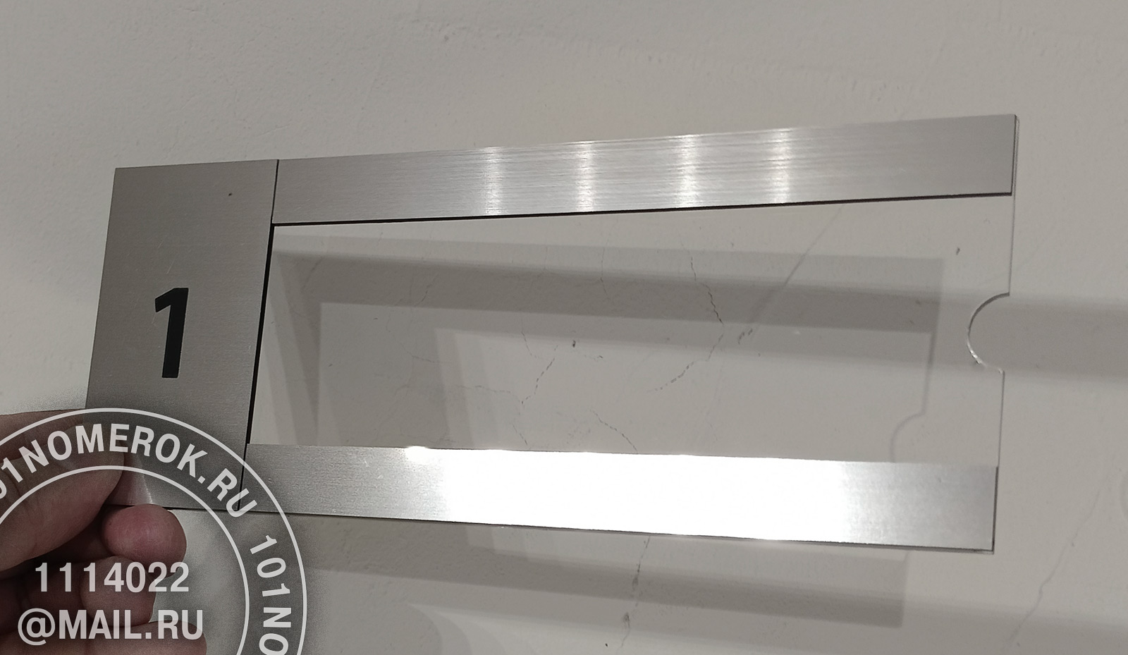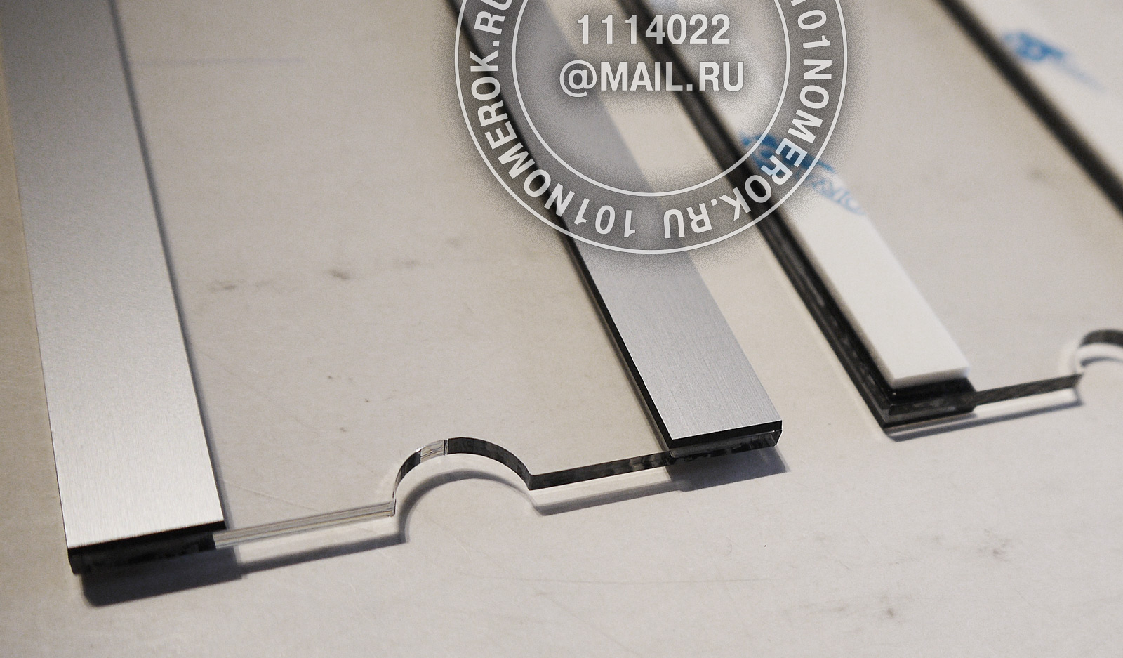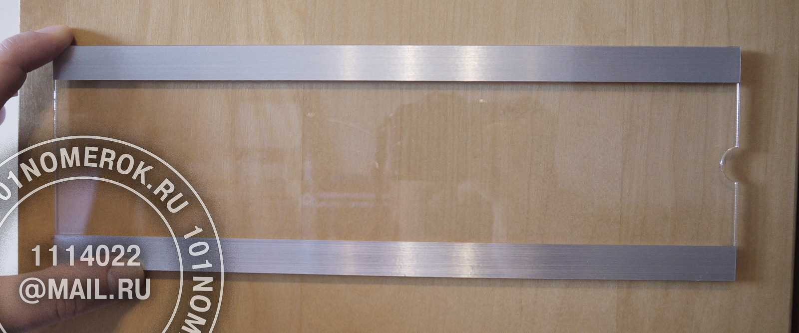 сверху на табличку клеютсядве полоски из композитного пластика 1.7 мм, обычно под металл, чтобы с внешней стороны не были видны полоски крепежного скотча.