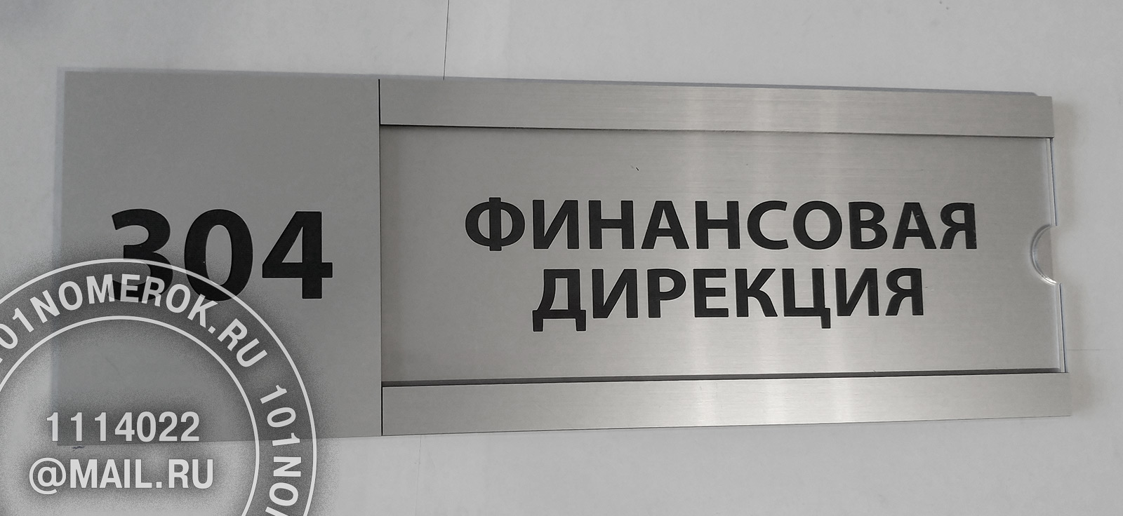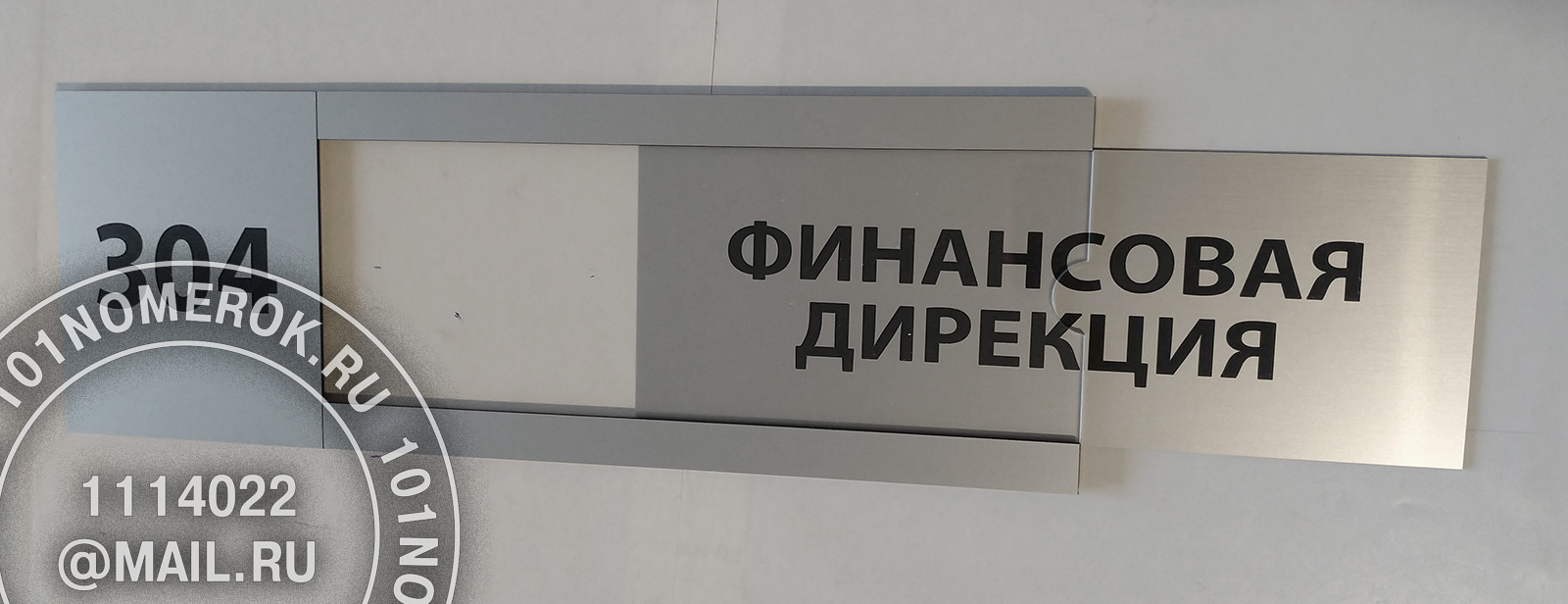 Вариант таблички - кармана для вставки листа с информацией с передними декоративными полосками из композитного пластика. Если сделать верхнюю полоску чуть шире, на нее можно отгравировать номер кабинета или название должности, либо другую информацию.