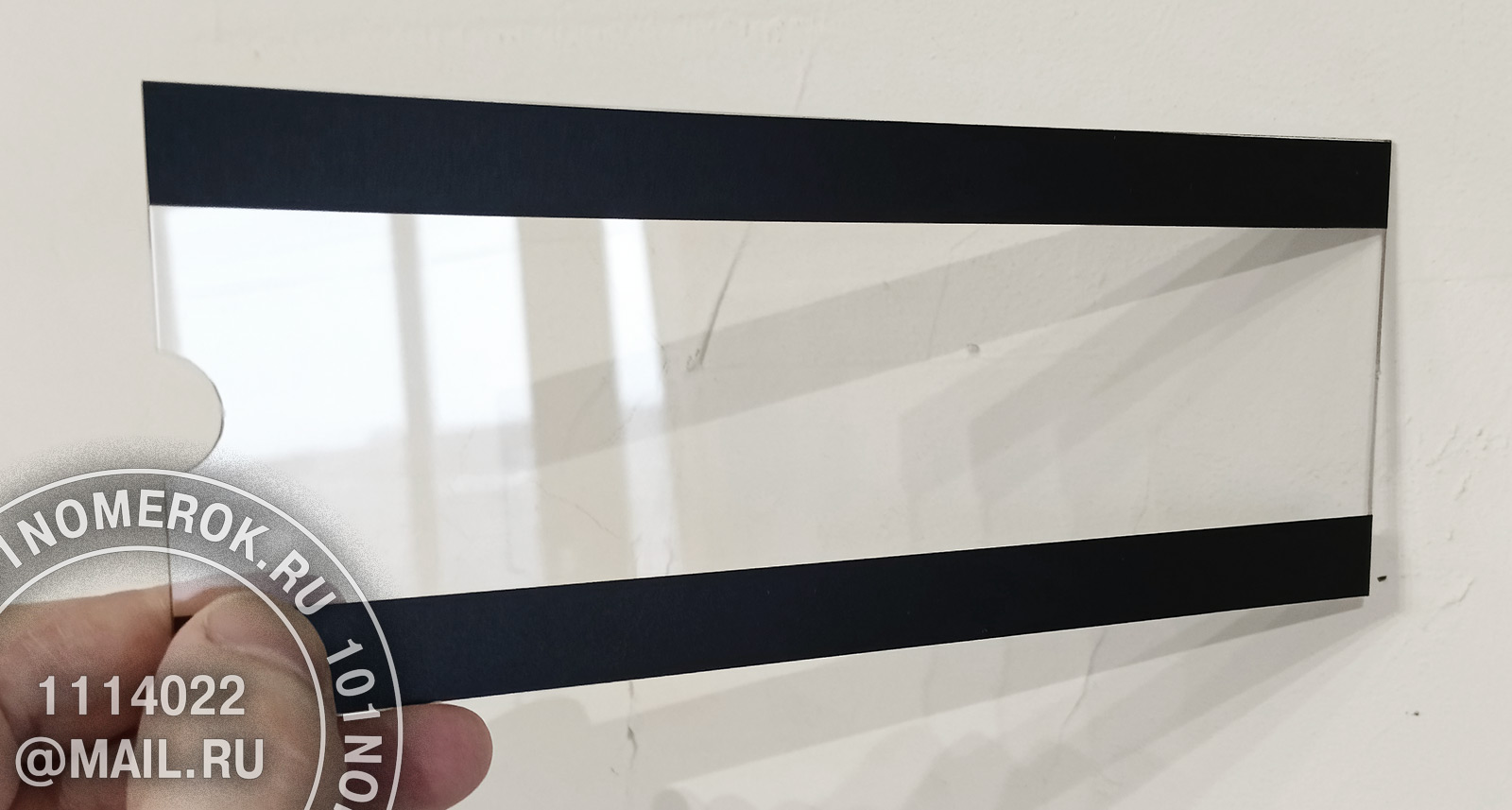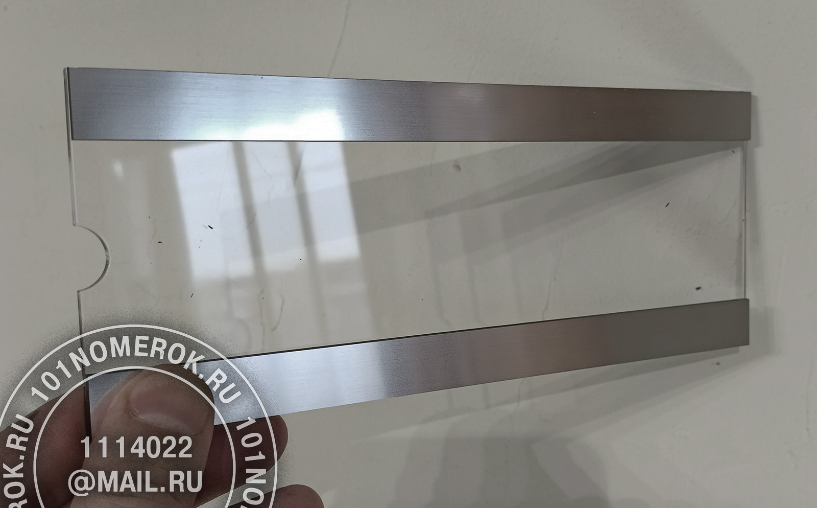 самой таблички кармана - пластины из прозрачного акрила 3 мм. Карман режется на лазерном оборудовании что дает красивый полированный край.