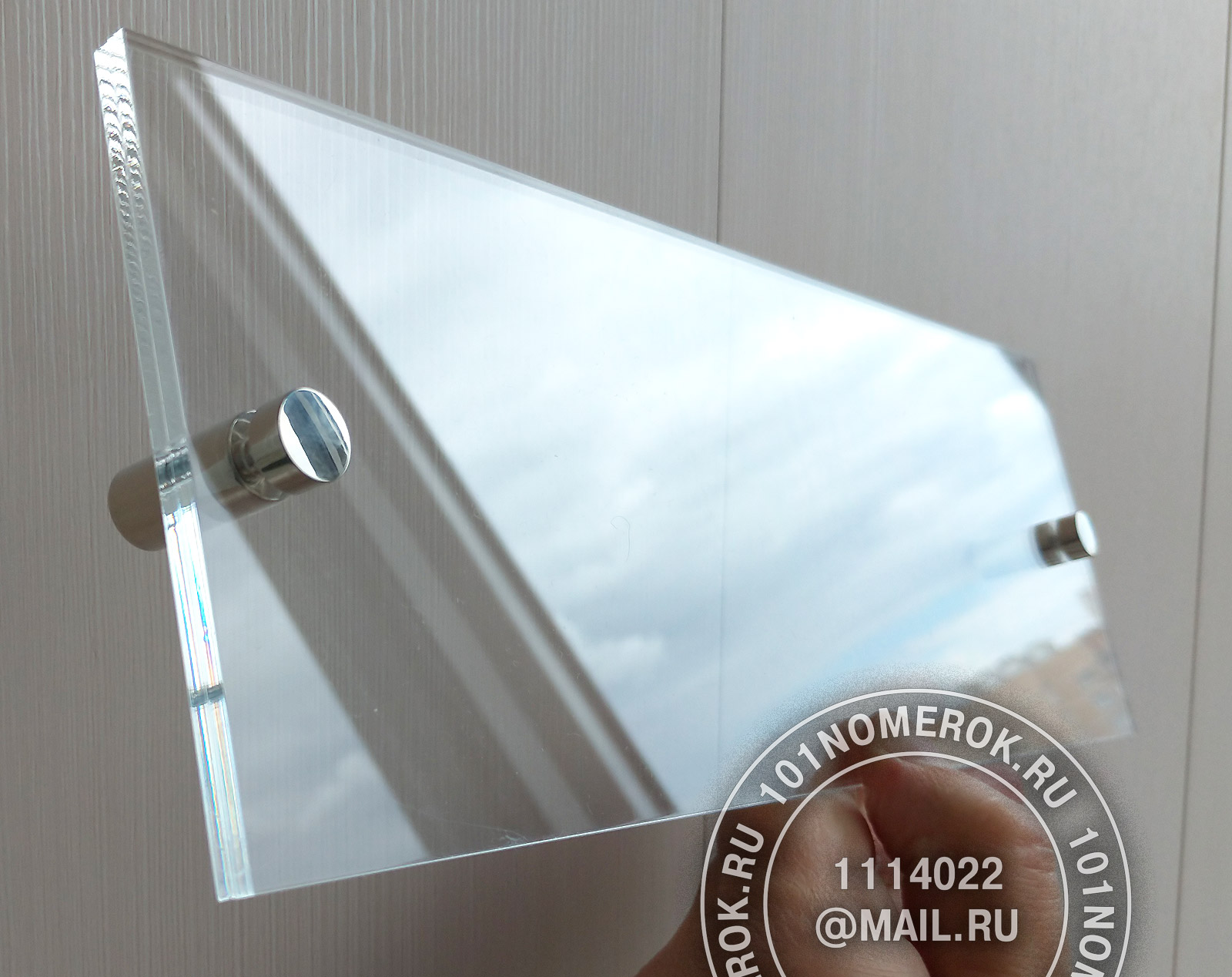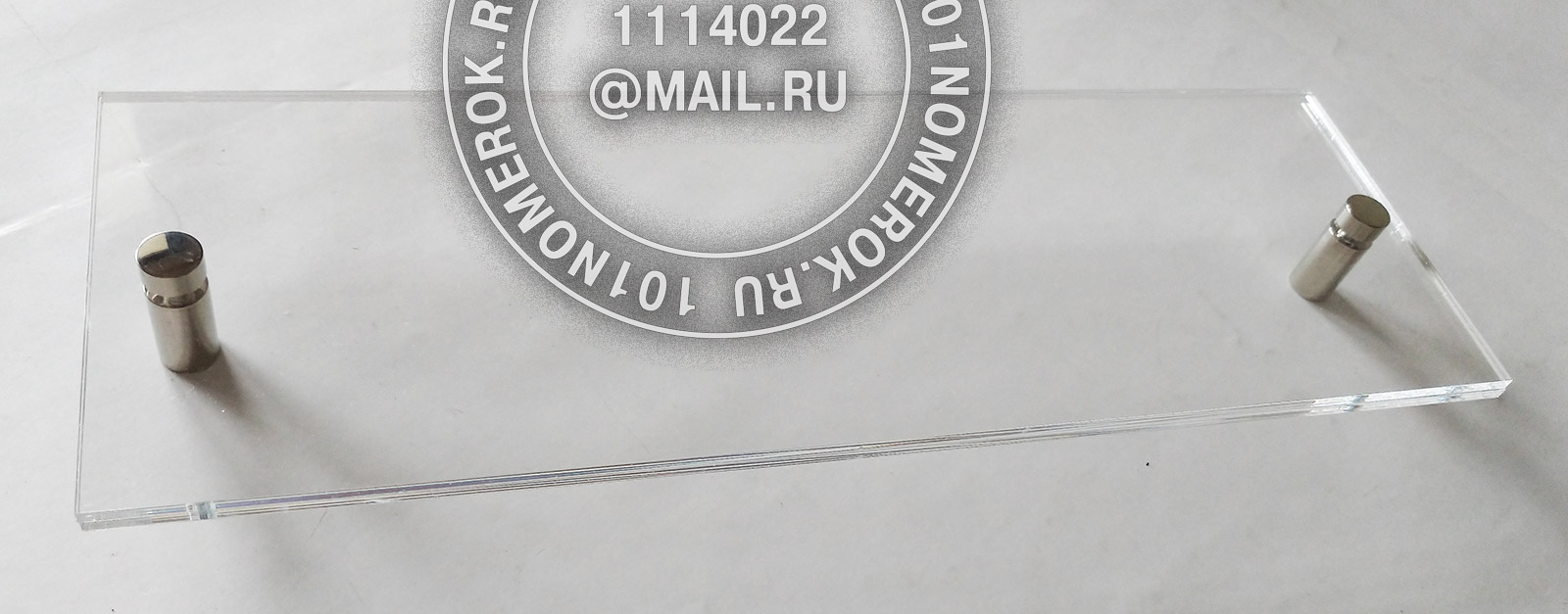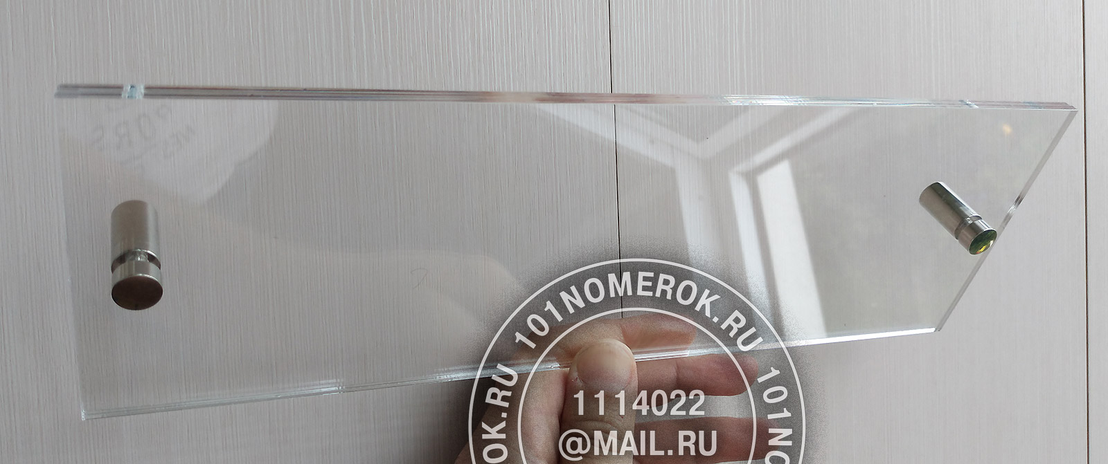 1 вариант. ТАБЛИЧКА ИЗ ДВУХ СЛОЕВ ПРОЗРАЧНОГО АКРИЛА 2-3 мм. С КРЕПЛЕНИЕМ НА ДЕРЖАТЕЛИ.