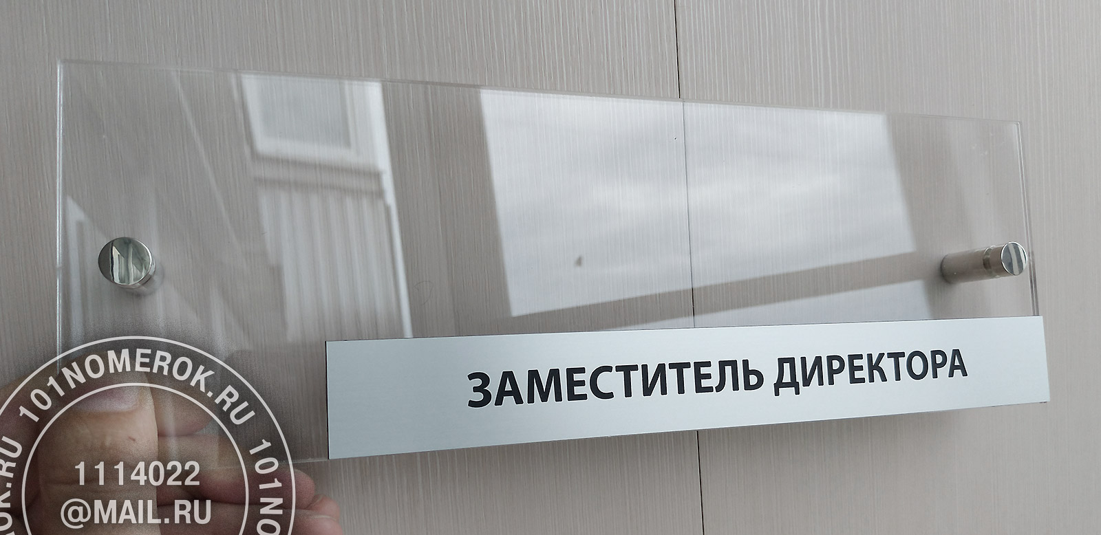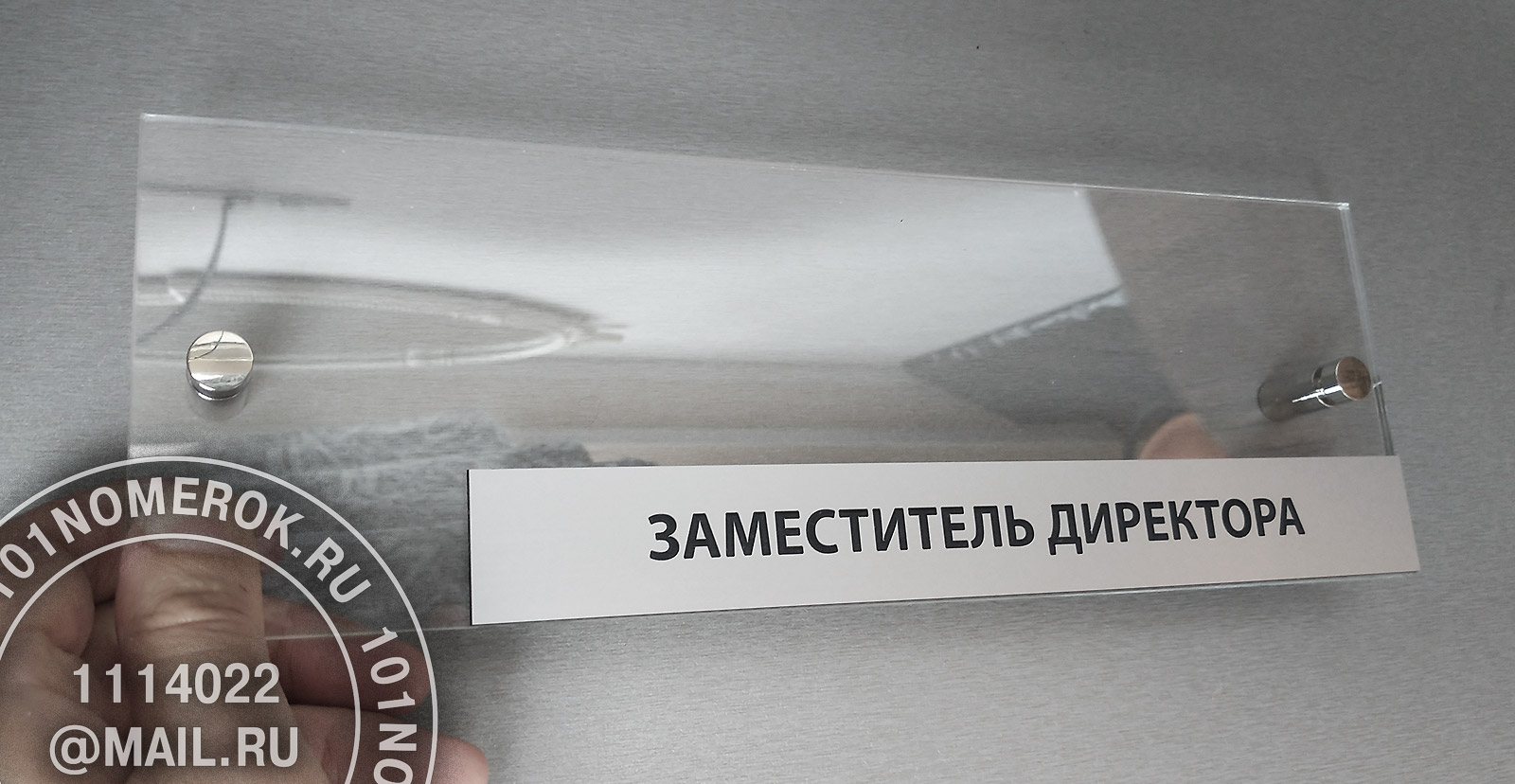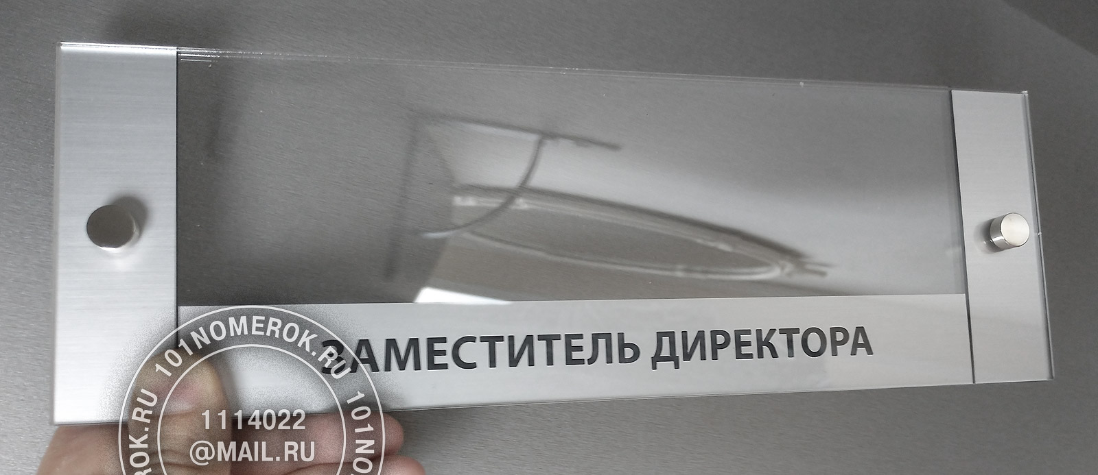 1 вариант. ТАБЛИЧКА ИЗ ДВУХ СЛОЕВ ПРОЗРАЧНОГО АКРИЛА 2-3 мм. С КРЕПЛЕНИЕМ НА ДЕРЖАТЕЛИ.