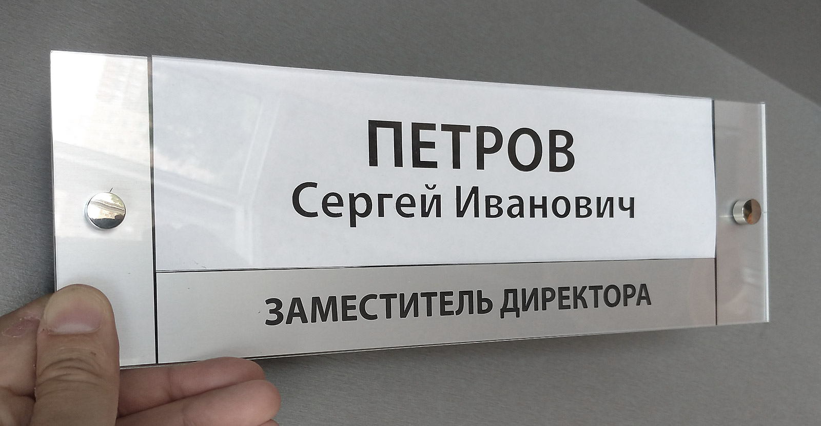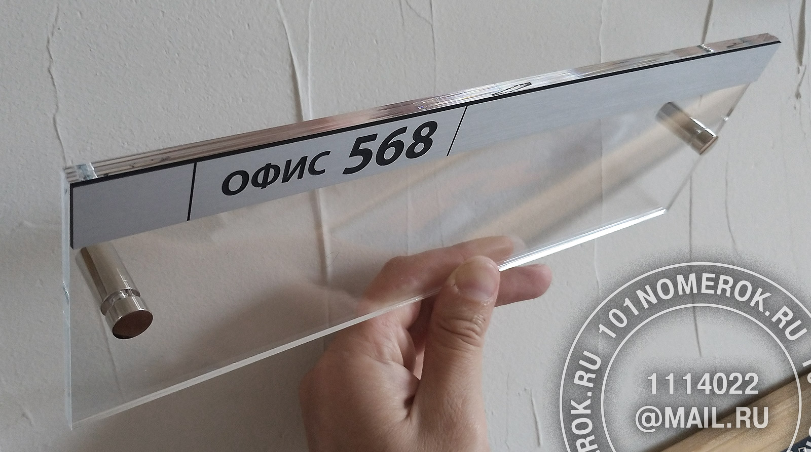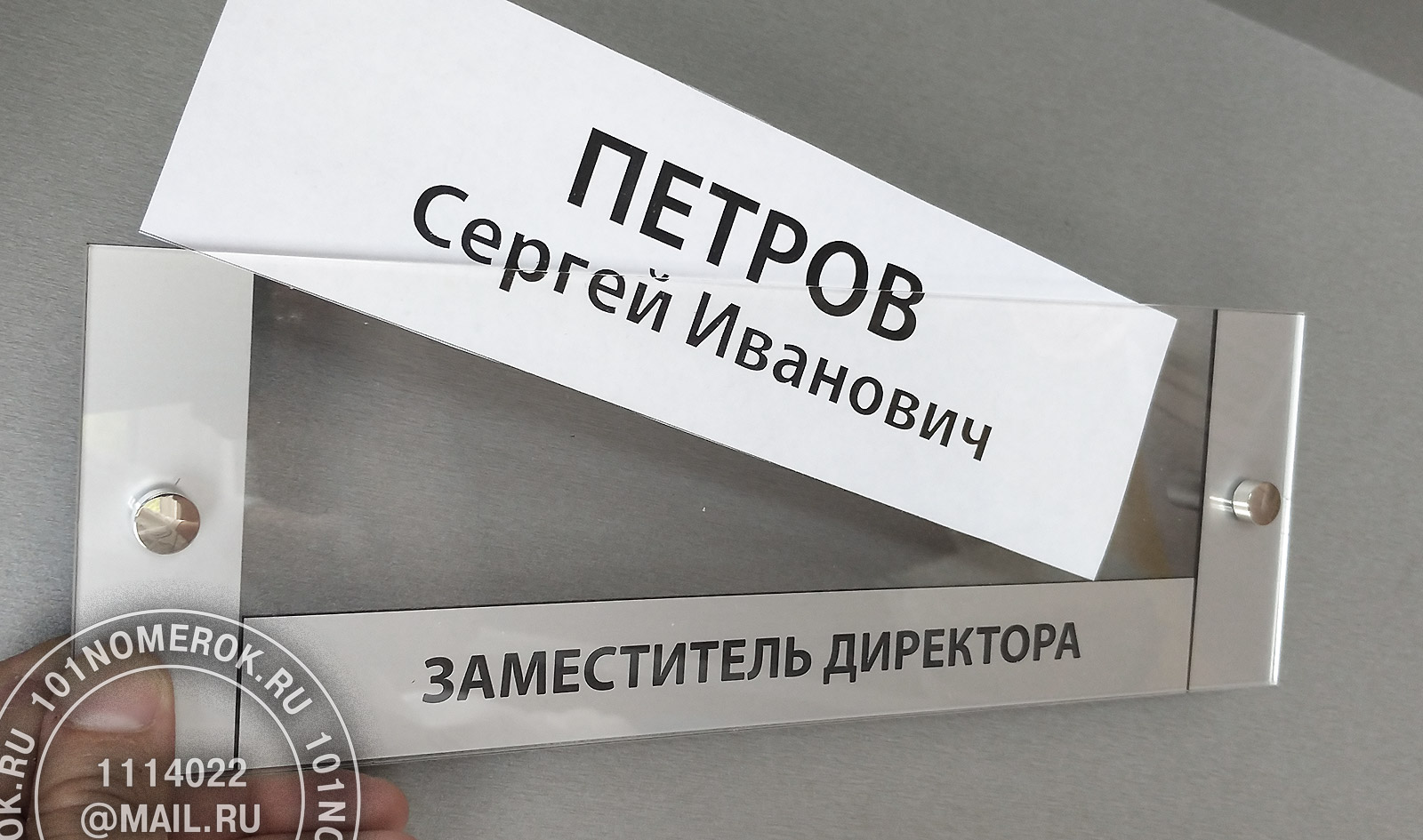 Дополнительно на табличку можно наклеить панель из композитного пластика с информацией, например номером офиса.