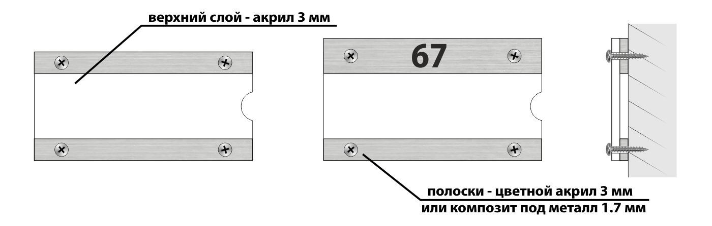 2-х полосок, цветных (акрил 3 мм) или под металл (композит 1.7 мм).