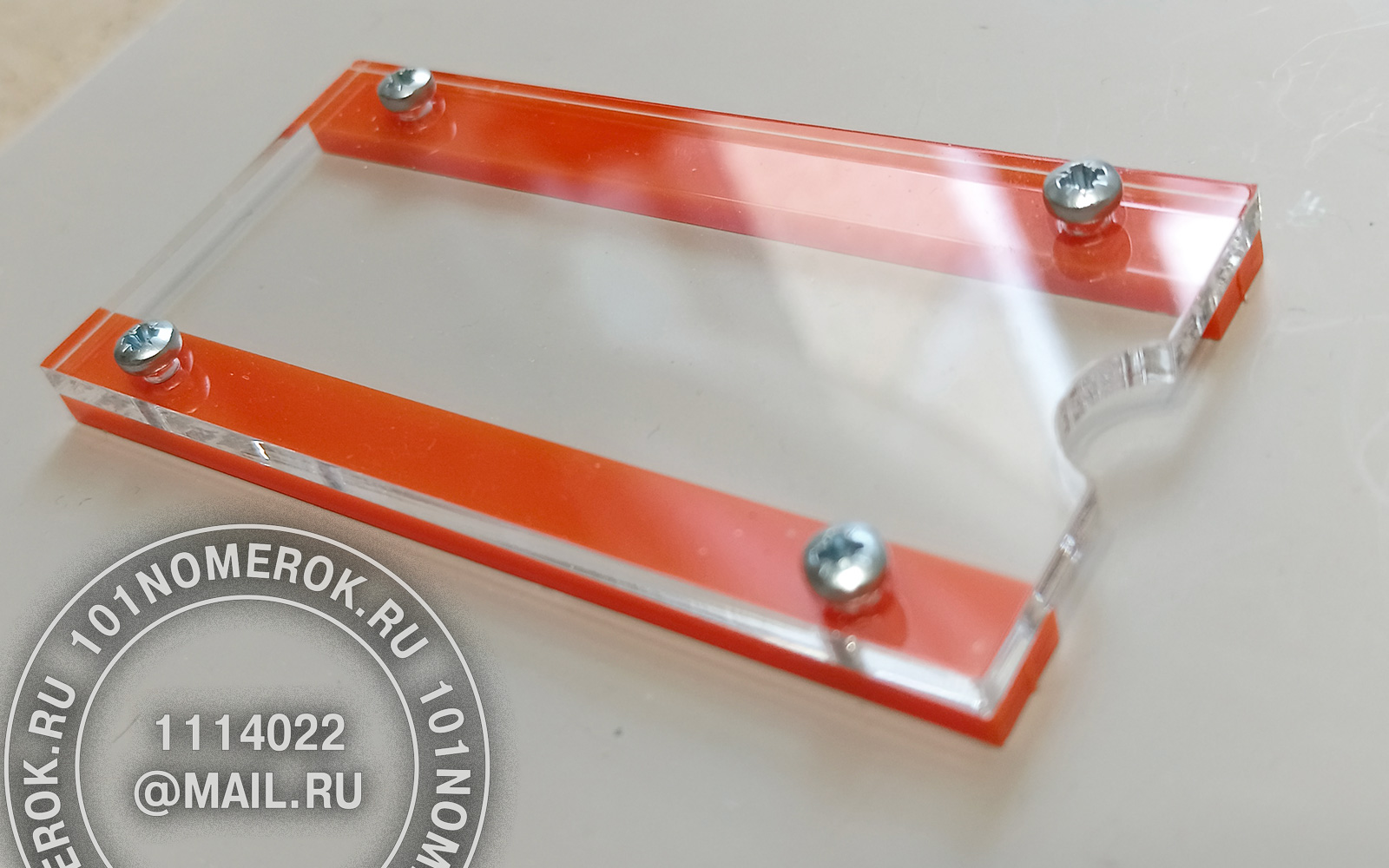 1 вариант. КАРМАШЕК ИЗ ПРОЗРАЧНОГО АКРИЛА 3 мм С ПОЛОСКАМИ СВЕРХУ И СНИЗУ (крепление - 4 маленьких самореза)