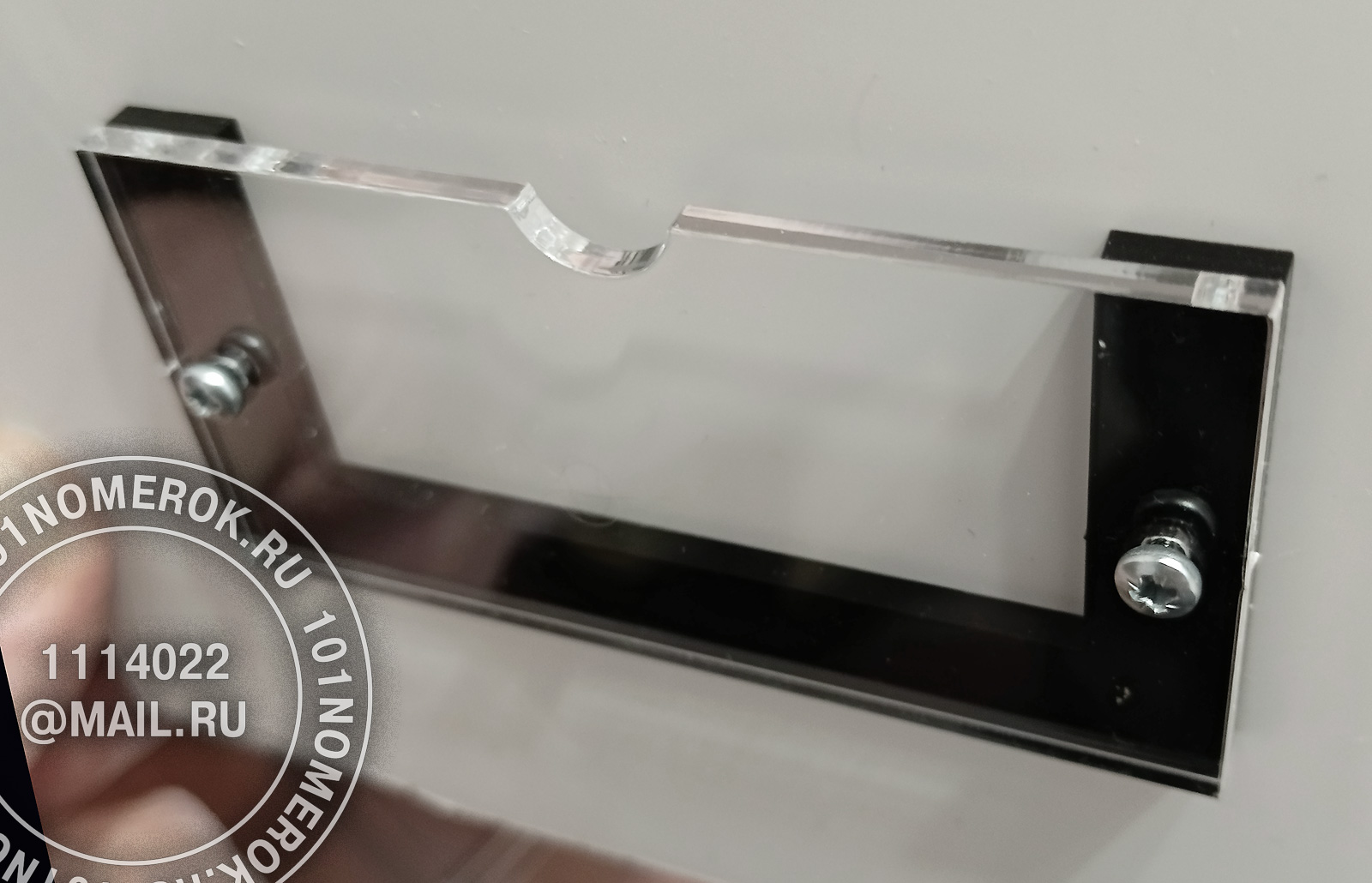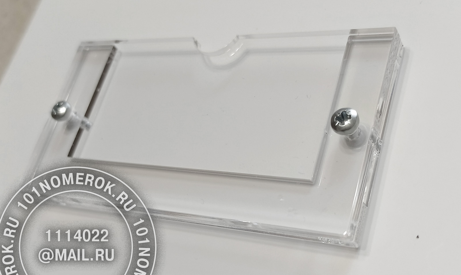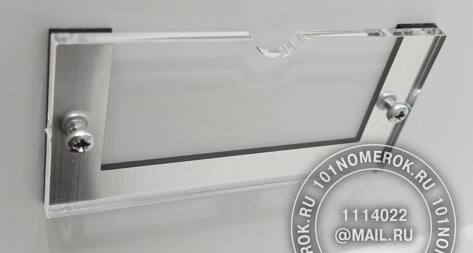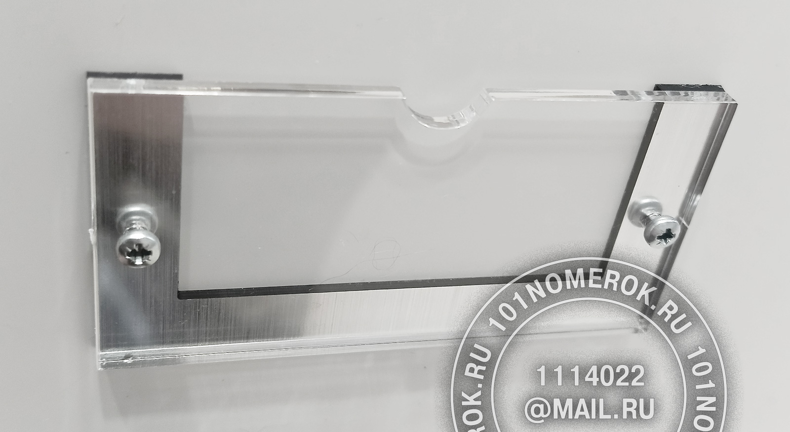 2 вариант. КАРМАШЕК ИЗ ПРОЗРАЧНОГО АКРИЛА 3 мм, П-ОБРАЗНАЯ РАМКА (крепление - 2 маленьких самореза)