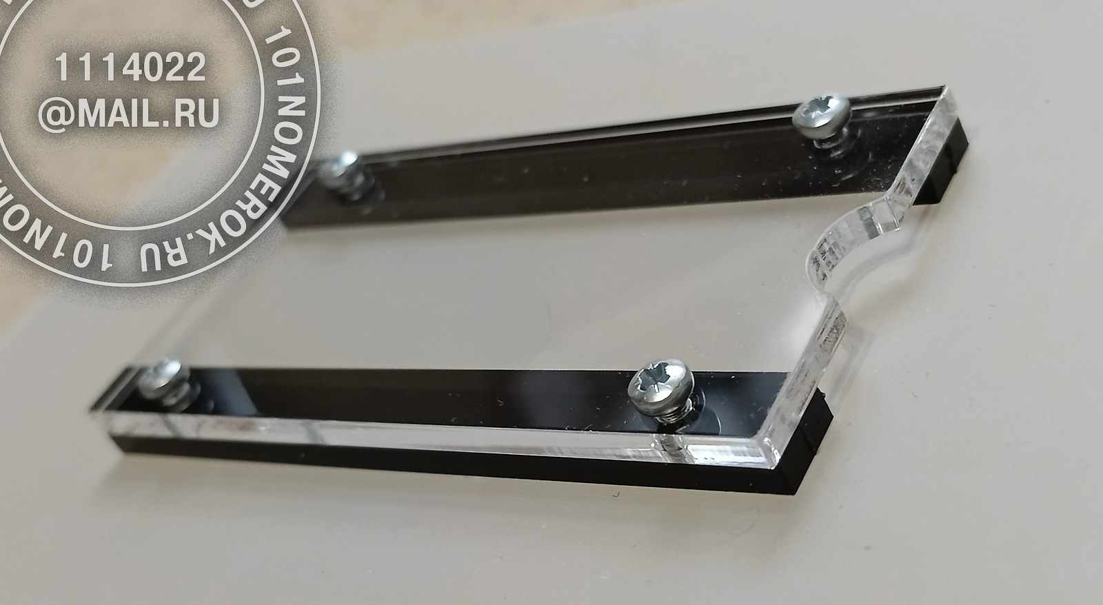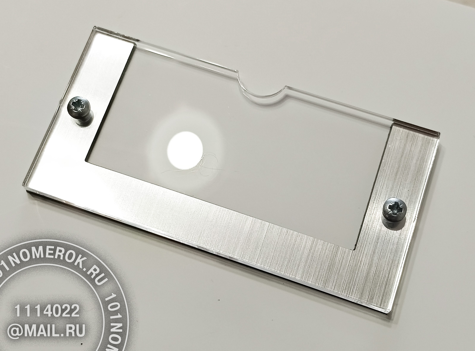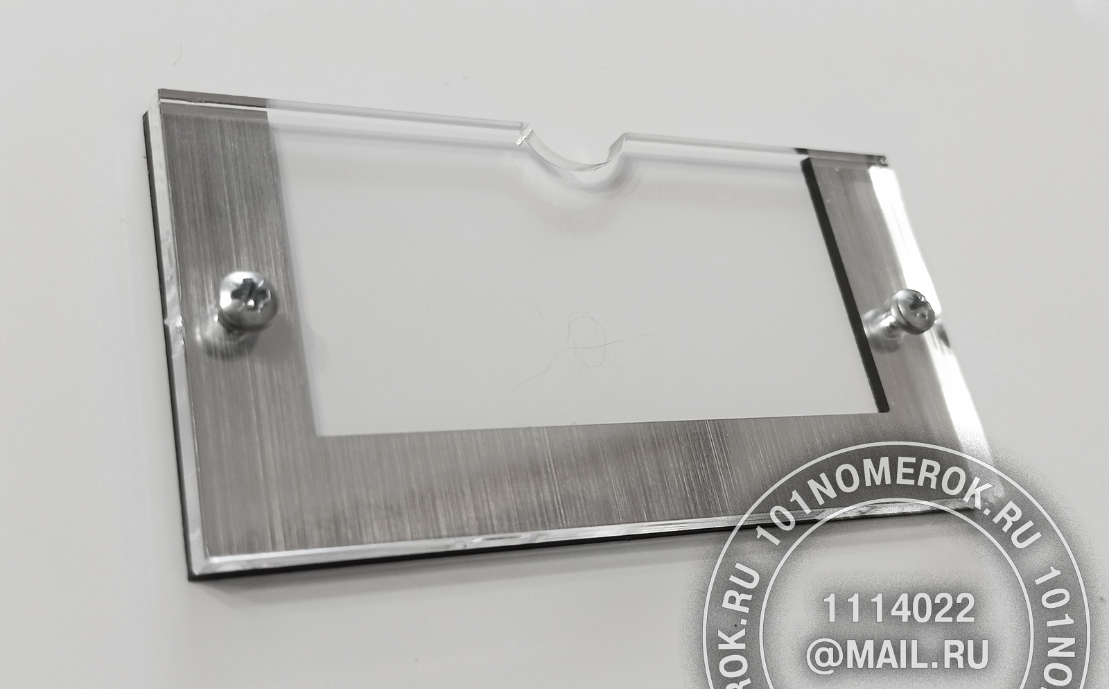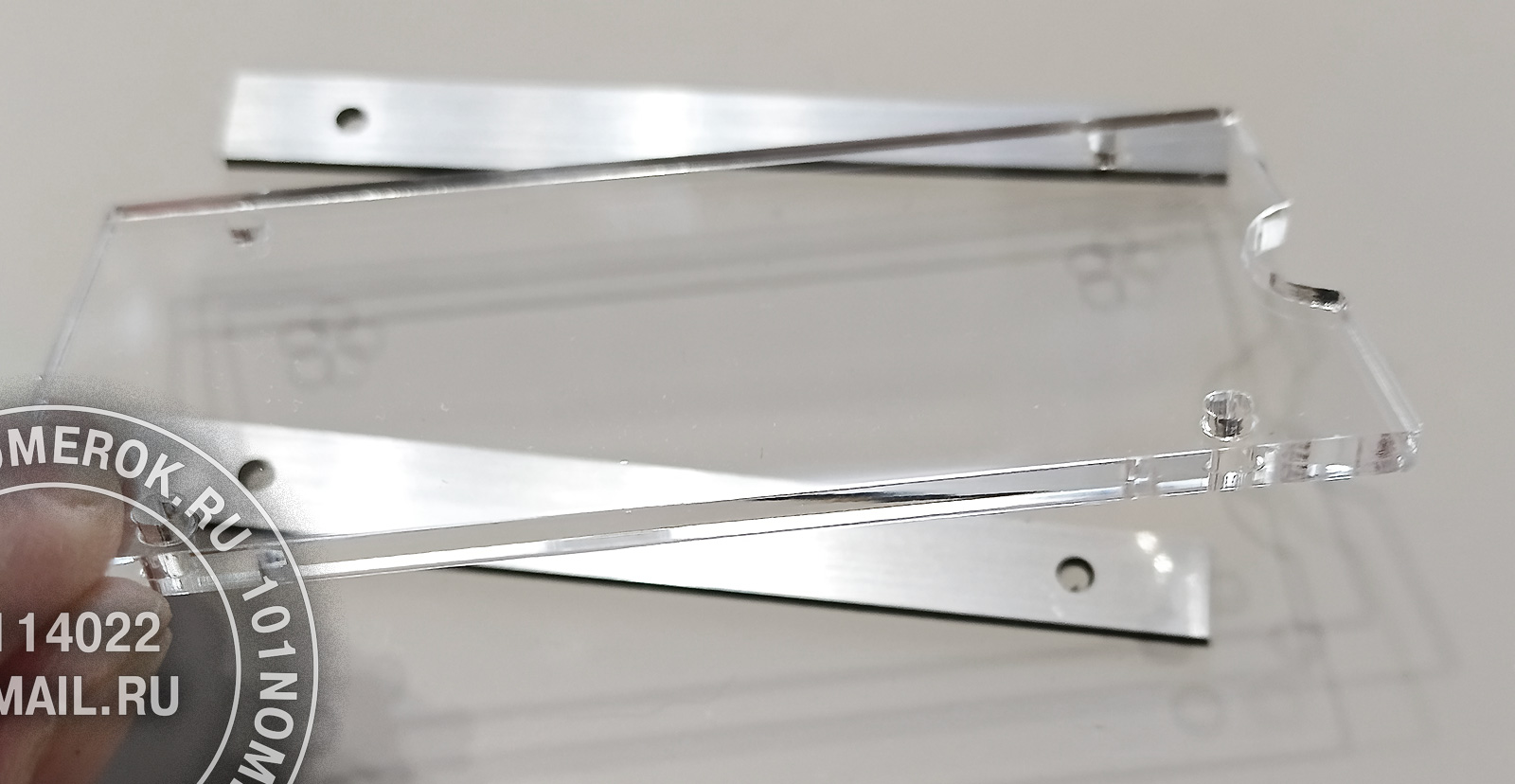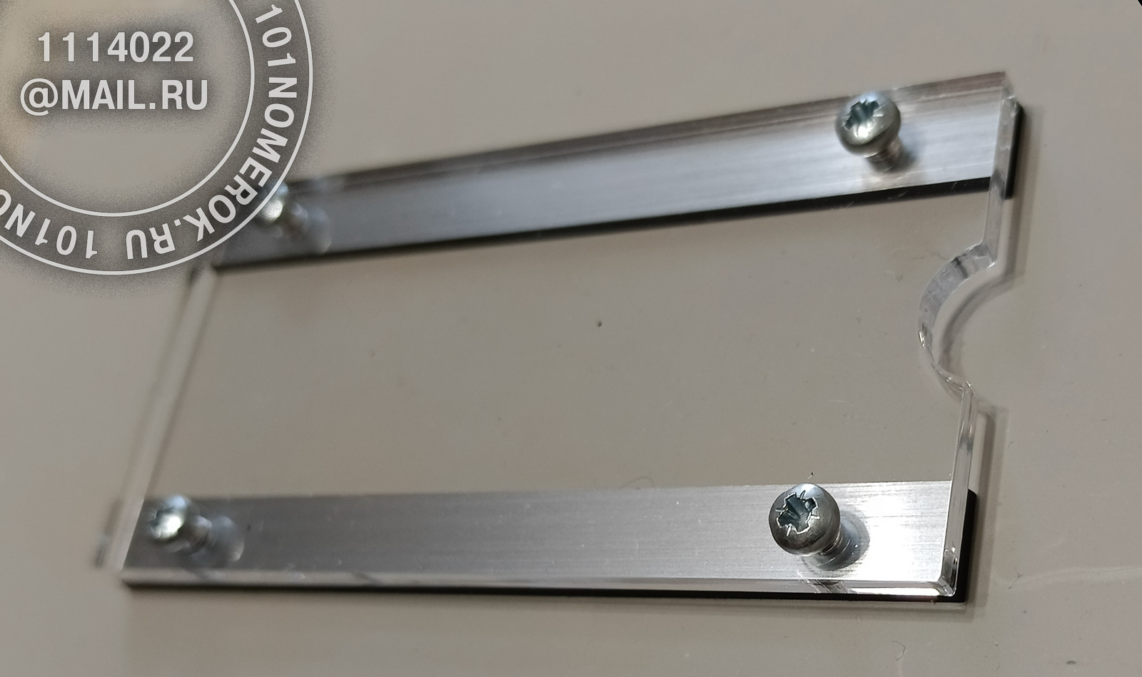 2 вариант. КАРМАШЕК ИЗ ПРОЗРАЧНОГО АКРИЛА 3 мм, П-ОБРАЗНАЯ РАМКА (крепление - 2 маленьких самореза)