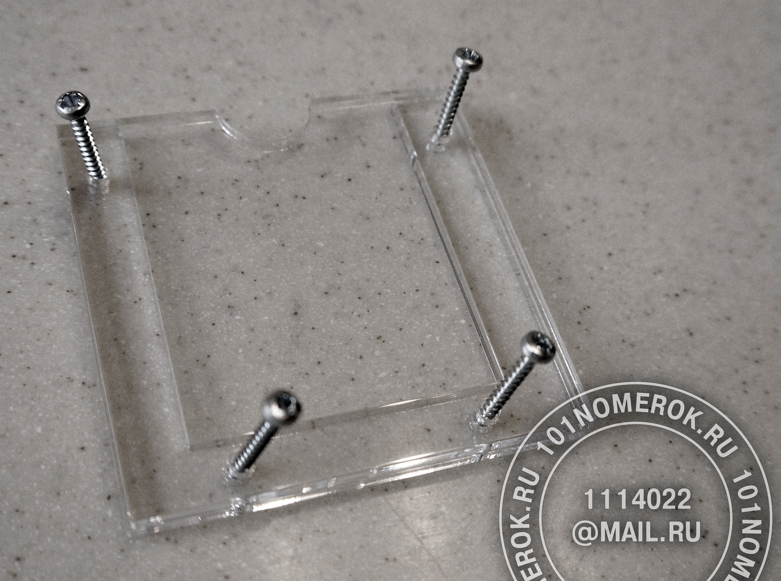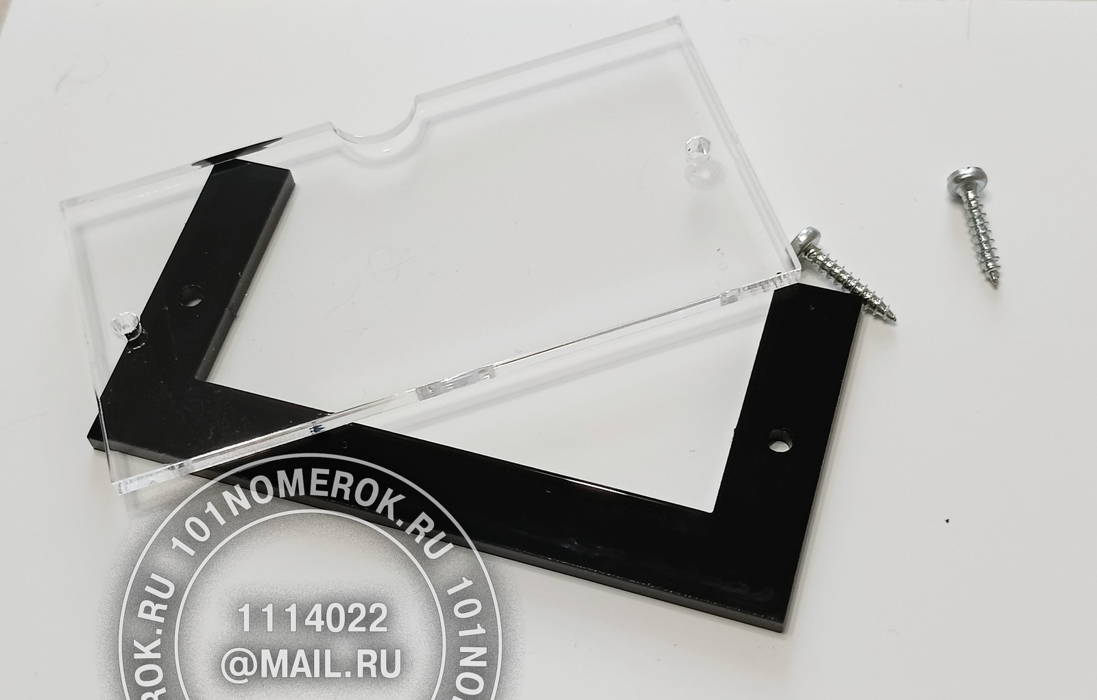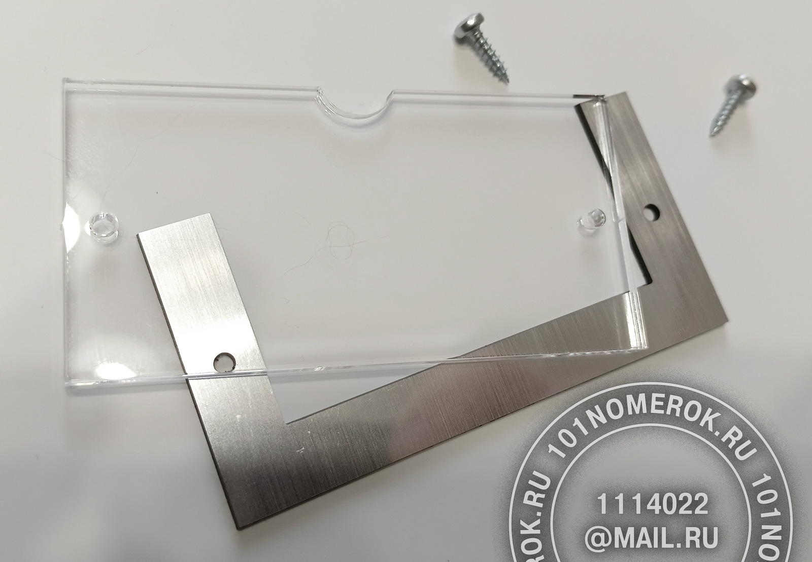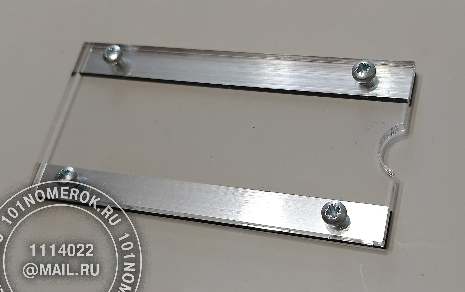 2 вариант. КАРМАШЕК ИЗ ПРОЗРАЧНОГО АКРИЛА 3 мм, П-ОБРАЗНАЯ РАМКА (крепление - 2 маленьких самореза)