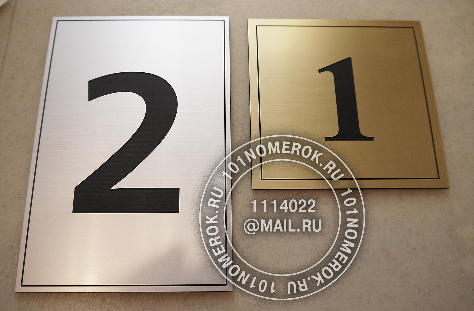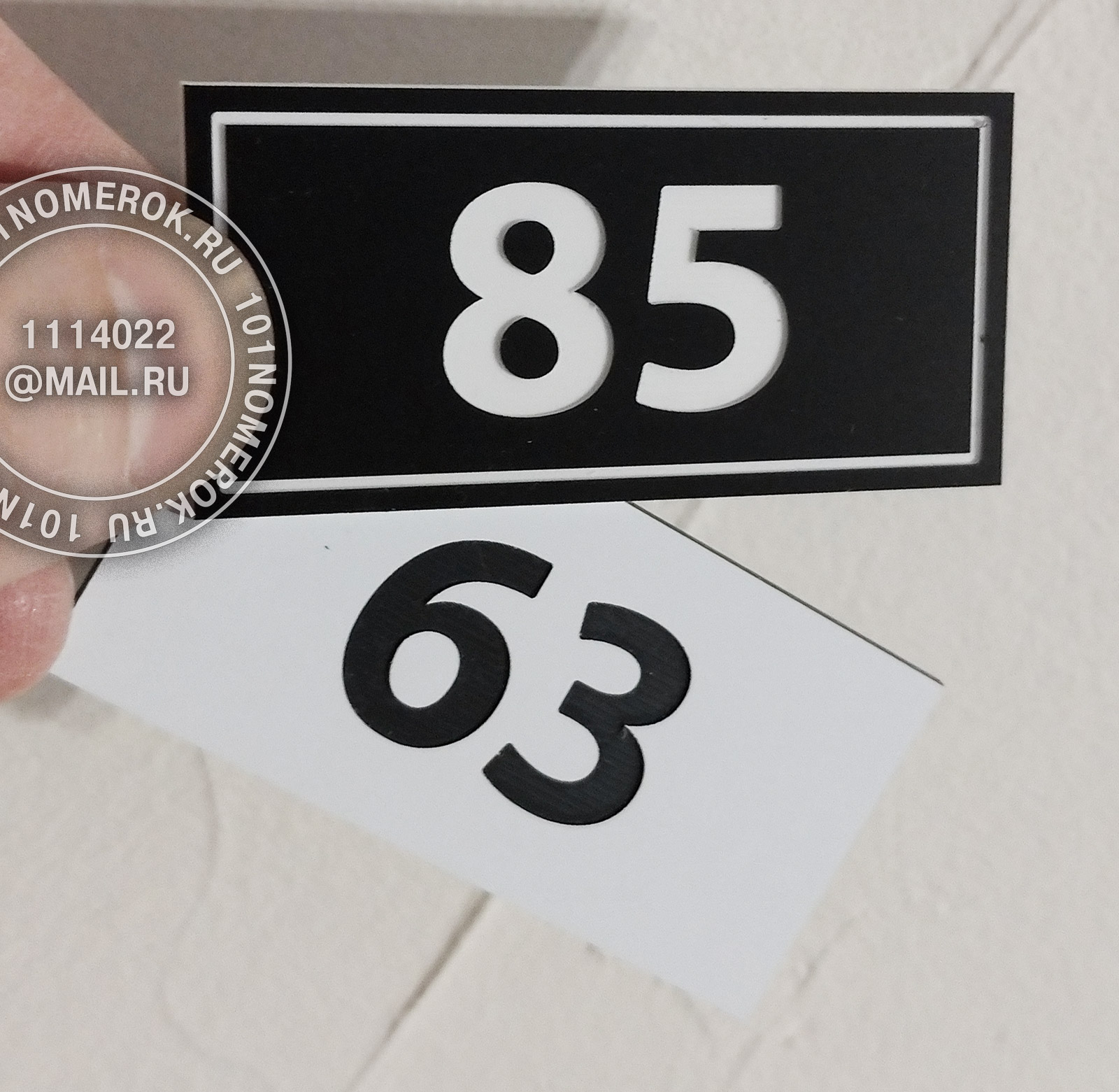 Мы можем сделать любую нумерацию, не по порядку, по списку, четную или только нечетную, не только с цифрами, но и с буквами (например 101К).Размер номерков на дверь могут быть совершенно различными - начиная от 30 и до 200 мм - такие размеры готовых квартирных номерков просто не продаются в магазине. Минимальный размер номерка 30х40 мм.