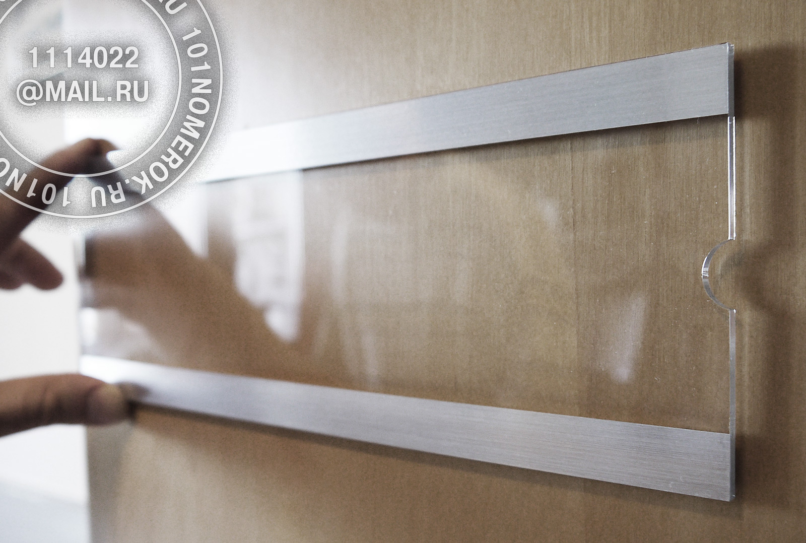самой таблички кармана - пластины из прозрачного акрила 3 мм. Карман режется на лазерном оборудовании что дает красивый полированный край.