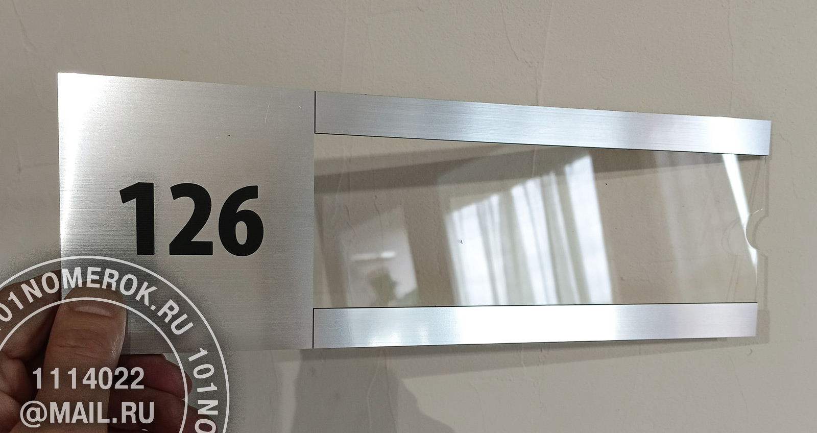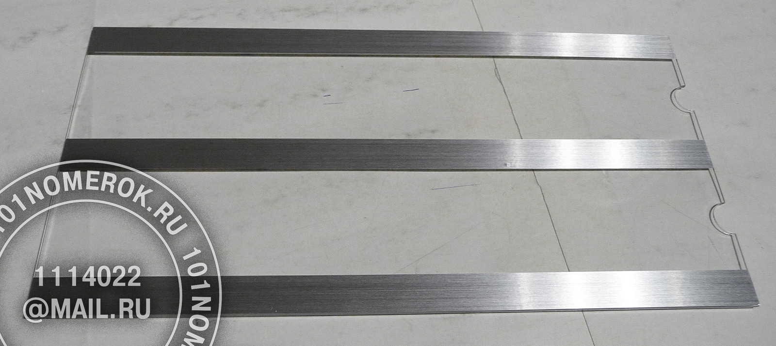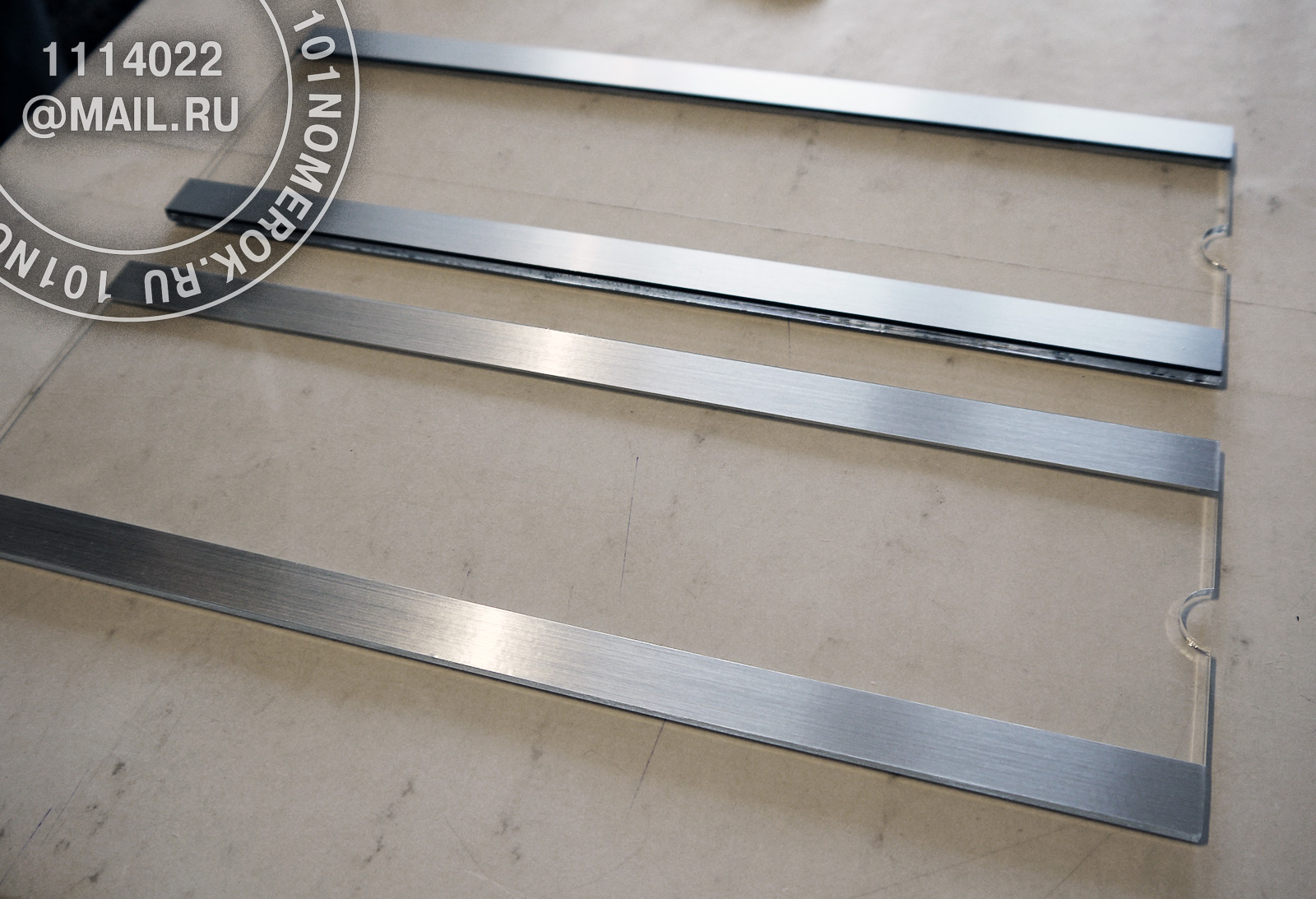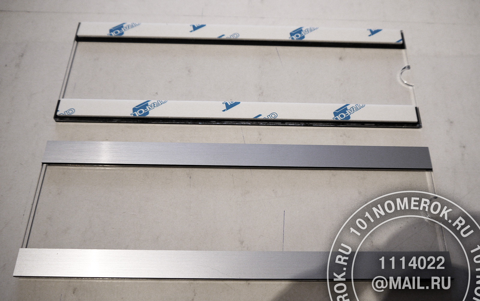 сверху на табличку клеютсядве полоски из композитного пластика 1.7 мм, обычно под металл, чтобы с внешней стороны не были видны полоски крепежного скотча.