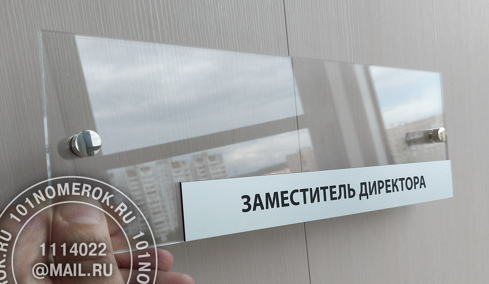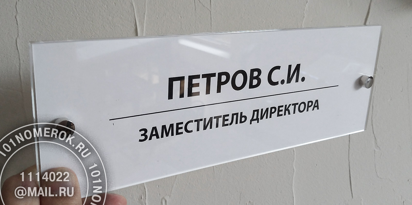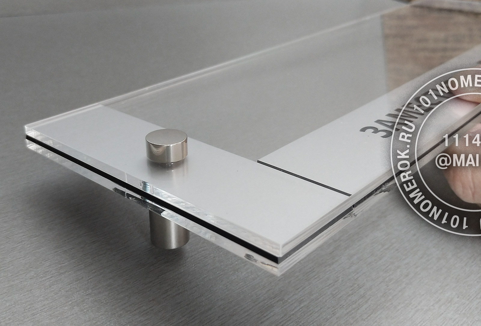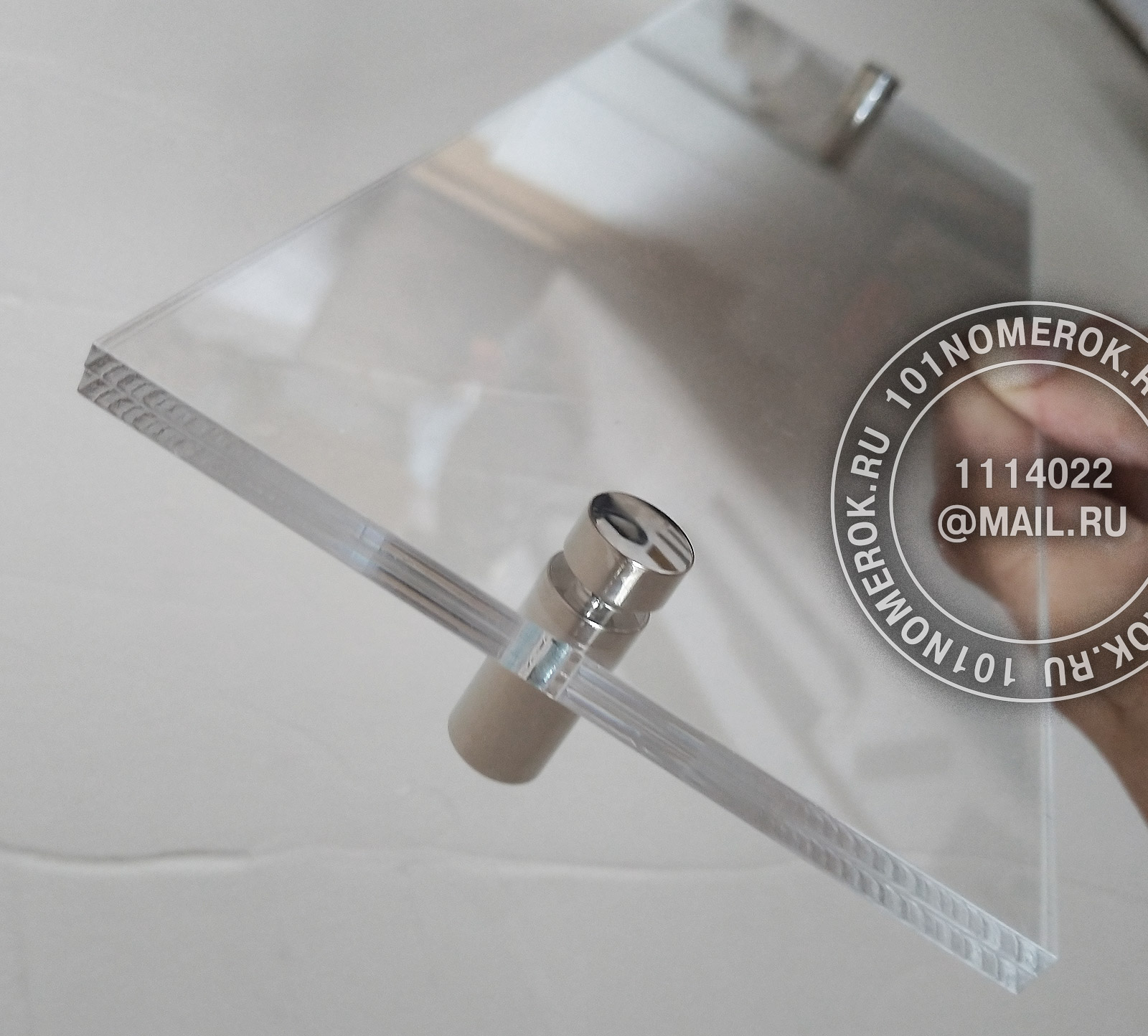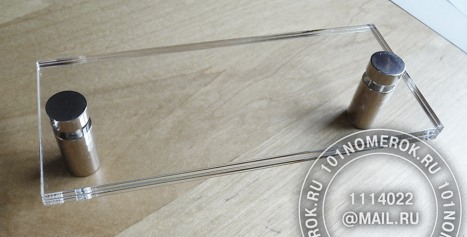 1 вариант. ТАБЛИЧКА ИЗ ДВУХ СЛОЕВ ПРОЗРАЧНОГО АКРИЛА 2-3 мм. С КРЕПЛЕНИЕМ НА ДЕРЖАТЕЛИ.