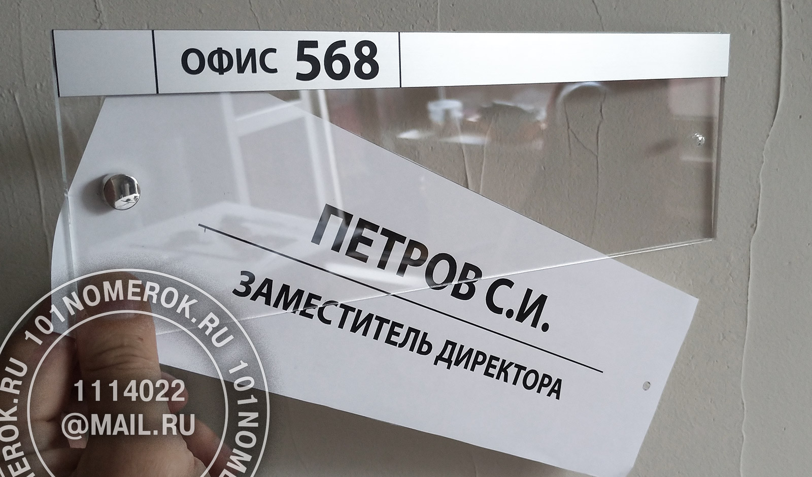 Дополнительно на табличку можно наклеить панель из композитного пластика с информацией, например номером офиса.