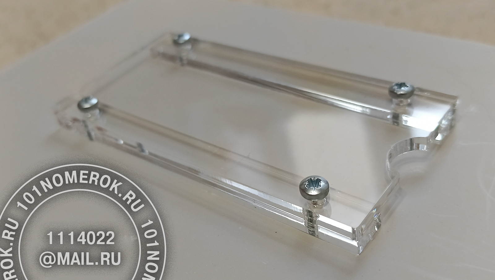 2 вариант. КАРМАШЕК ИЗ ПРОЗРАЧНОГО АКРИЛА 3 мм, П-ОБРАЗНАЯ РАМКА (крепление - 2 маленьких самореза)